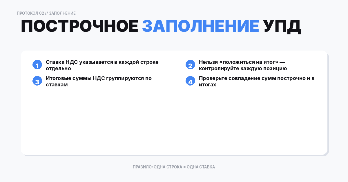 Ниже — практические правила построчного заполнения, контроль итогов и сценарии, когда лучше разделить документы.